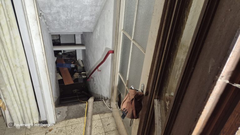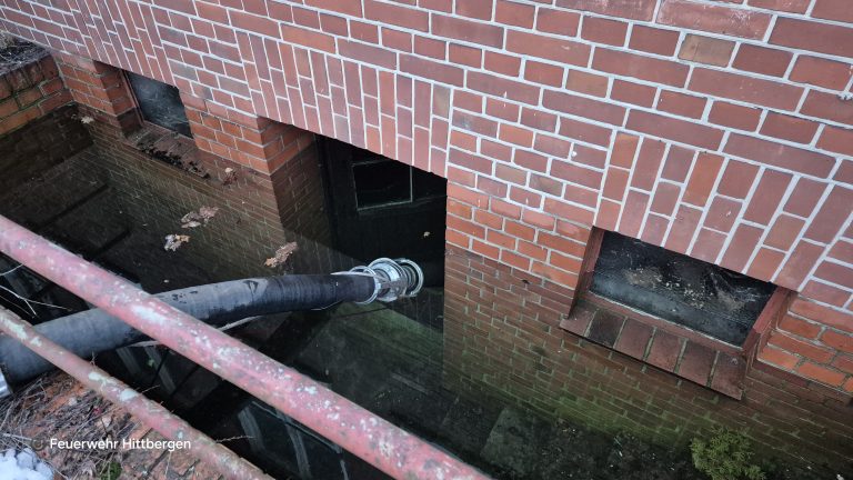 Ein aufmerksamer Bürger bemerkte am Freitagnachmittag eine auffällig hohe Wassermenge, welche vom Grundstück der ehemaligen Schule auf die Straße gelangte. Bei näherer Betrachtung, füllte das Wasser bereits den gesamten Treppenabgang zum Keller. Die Feuerwehr pumpte daraufhin mit mehreren Pumpen den Keller aus. Da das gesamte Gebäude unterkellert ist, dauerte dieses über vier Stunden. Der Wasserversorger war schon kurz nach Einsatzbeginn vor Ort und sperrte die Trinkwasserleitung zu dem leer stehenden Gebäude ab. Als am Abend die Kellerräume soweit passierbar waren, konnte auch der Energieversorger das gesamte Gebäude vom Strom trennen.